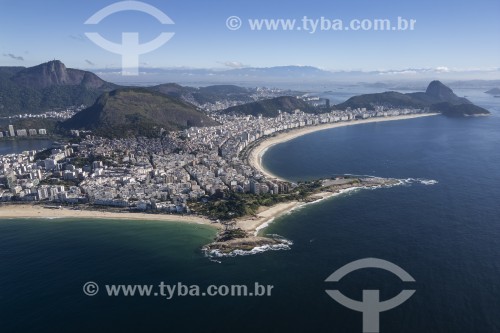 • Picture taken with drone of the Arpoador Stone with the Copacabana Beach and the Sugarloaf in the background  - Rio de Janeiro city - Rio de Janeiro state (RJ) - Brazil
