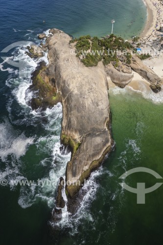 Picture taken with drone of the Arpoador Stone with Ipanema Beach in the background - Rio de Janeiro city - Rio de Janeiro state (RJ) - Brazil