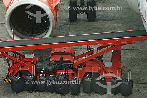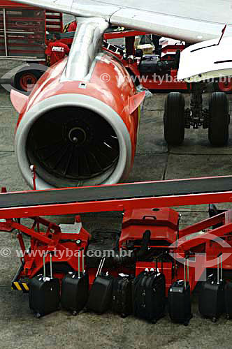 Luggage in front of airplane turbine - Congonhas Airport - Sao Paulo city - Sao Paulo state - Brazil - november 2006