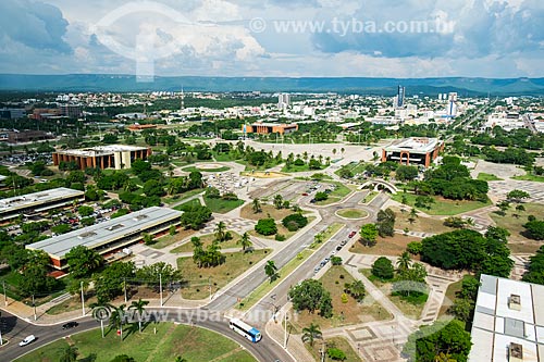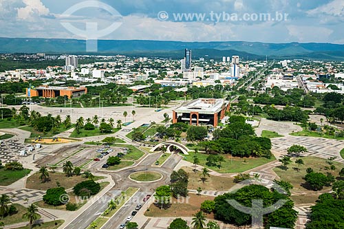 •  Aerial photo of the Girassois Square (Sunflower Square) with the Rio Tocantins Palace and the Legislative Assembly of the State of Tocantins - to the left - and the Araguaia Palace (1991) - headquarters of the State Government - to the right  - Palmas city - Tocantins state (TO) - Brazil