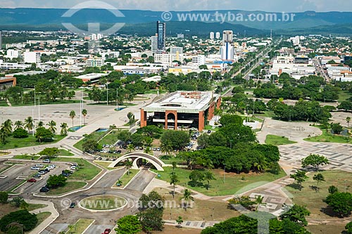 Aerial photo of the Palmas city with the Luis Carlos Prestes Memorial (1996) - to the left - the Department of Education and Culture, Health and Public Security and the Palmas Shopping in the background - Palmas city - Tocantins state (TO) - Brazil