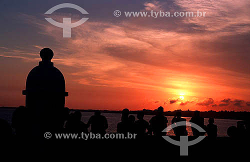 •  Silhouette of people viewing the sunset from Forte São Matheus (Saint Matthew Fort)*, constructed in 1617 - Praia do Forte (Fort Beach) - Costa do Sol (Sun Coast) - Regiao dos Lagos (Lakes Region) - Cabo Frio city - Rio de Janeiro state - Brazil  *