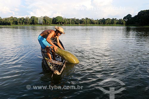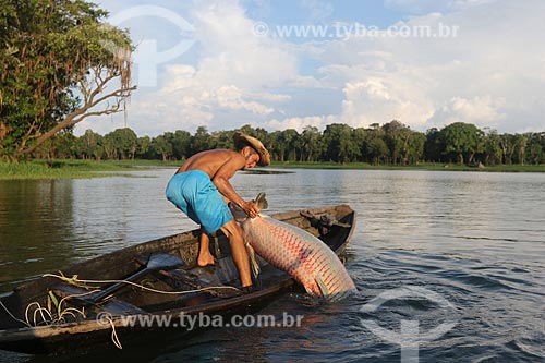 Fisherman during Pirarucu (Arapaima gigas) fishing - Piagacu-Purus Sustainable Development Reserve - Beruri city - Amazonas state (AM) - Brazil