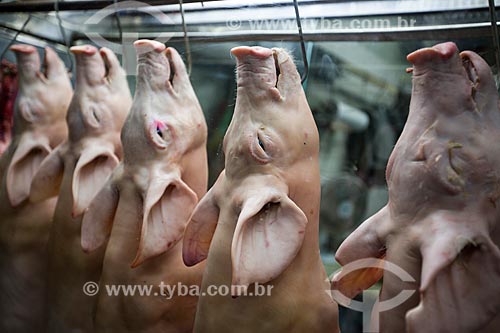 •  Subject: Pigs on exhibition in butcher of Goiania Municipal Market / Place: Goiania city - Goias state (GO) - Brazil / Date: 05/2014