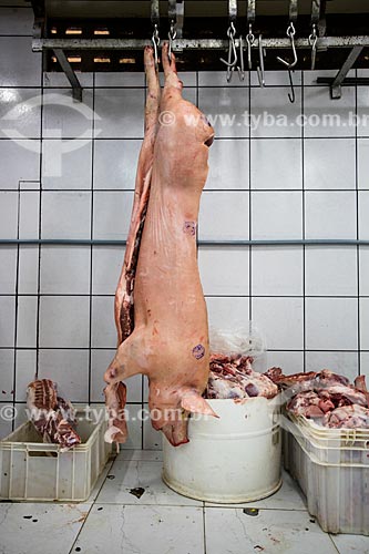 Subject: Pigs on exhibition in butcher of Goiania Municipal Market / Place: Goiania city - Goias state (GO) - Brazil / Date: 05/2014