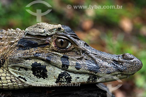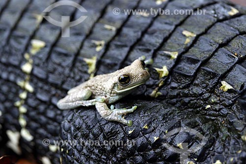 •  Detail of symbiosis between black caiman (Melanosuchus niger) and frog  - Manacapuru city - Amazonas state (AM) - Brazil