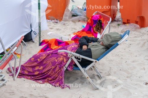 Bather protecting herself from the sun with a Kanga beach - Copacabana Beach - Rio de Janeiro city - Rio de Janeiro state (RJ) - Brazil