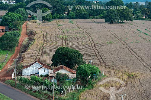 Wooden house with soybean plantation - rural zone of londrina city - Londrina city - Parana state (PR) - Brazil